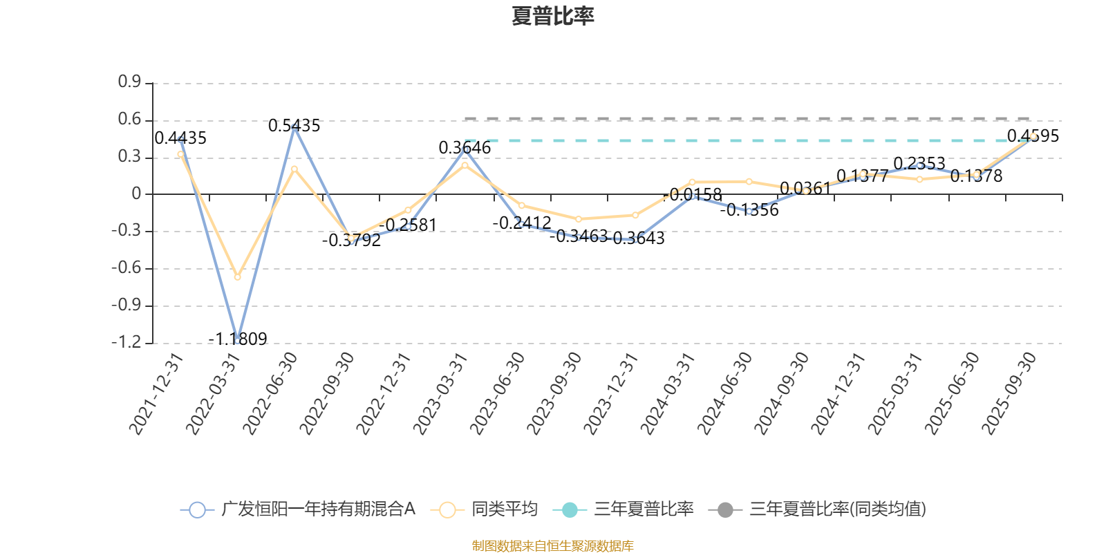 截至9月30日,基金近三年夏普比率为0.4344,位于同类可比基金394/553。