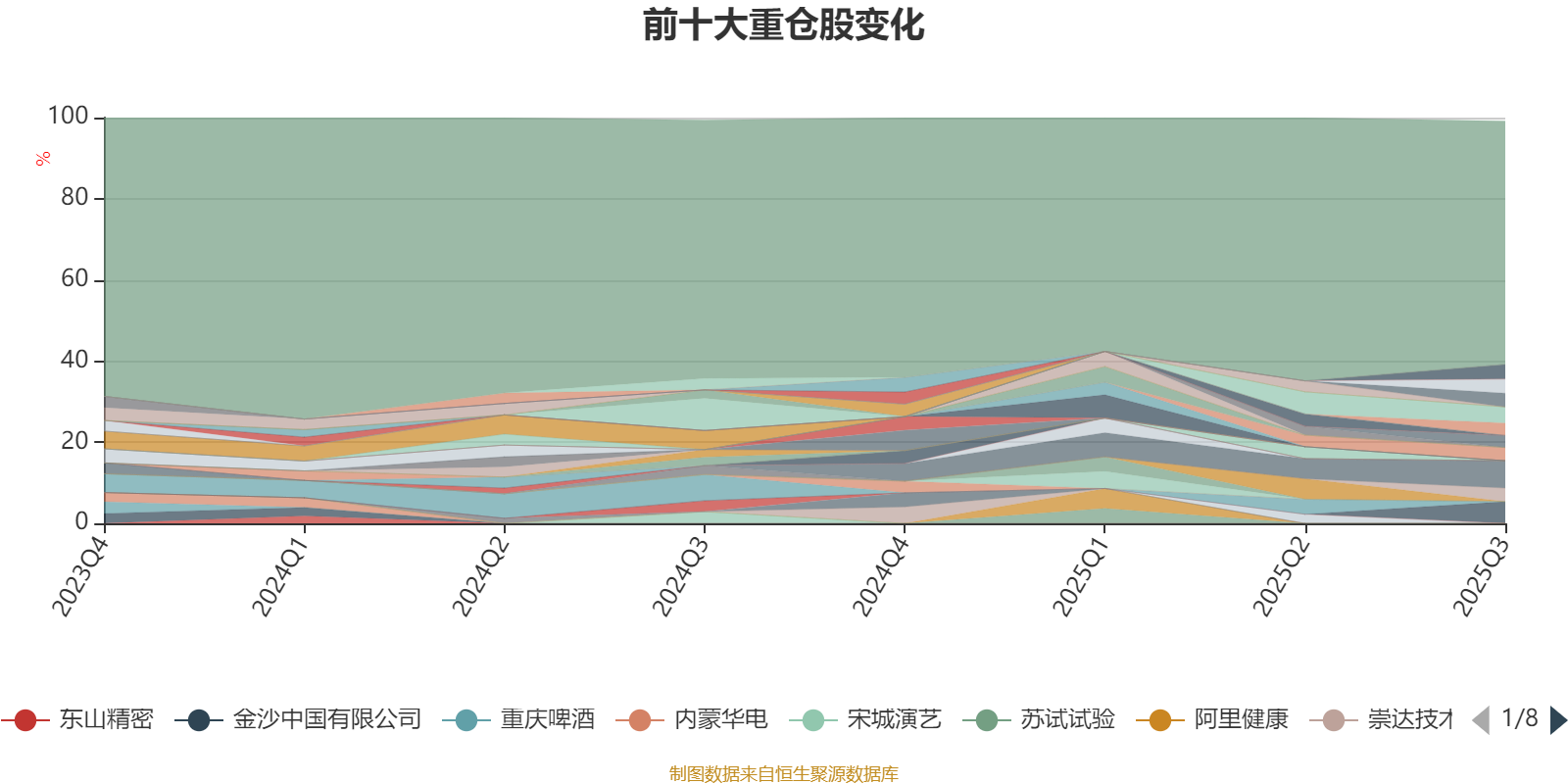 截至2025年三季度末,基金十大重仓股分别是鼎龙股份、中航沈飞、阿里巴巴-W、聚合顺、恩捷股份、德赛电池、天顺风能、湖南黄金、亿纬锂能、中芯国际。