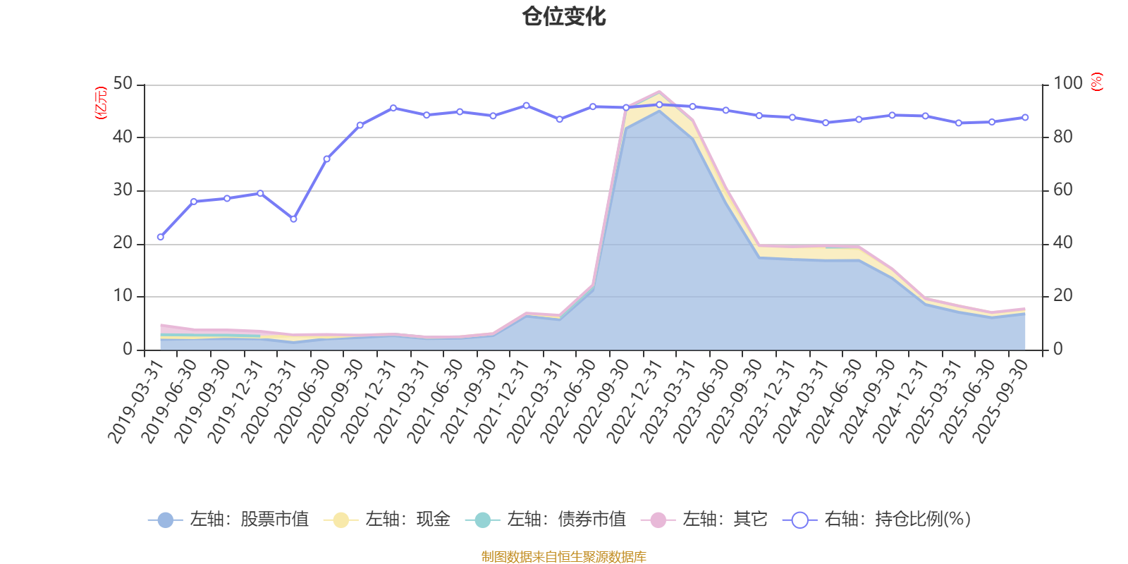 据定期报告数据统计,近三年平均股票仓位为88.24%,同类平均为72.35%。2022年末基金达到92.47%的最高仓位,2019年一季度末最低,为42.6%。