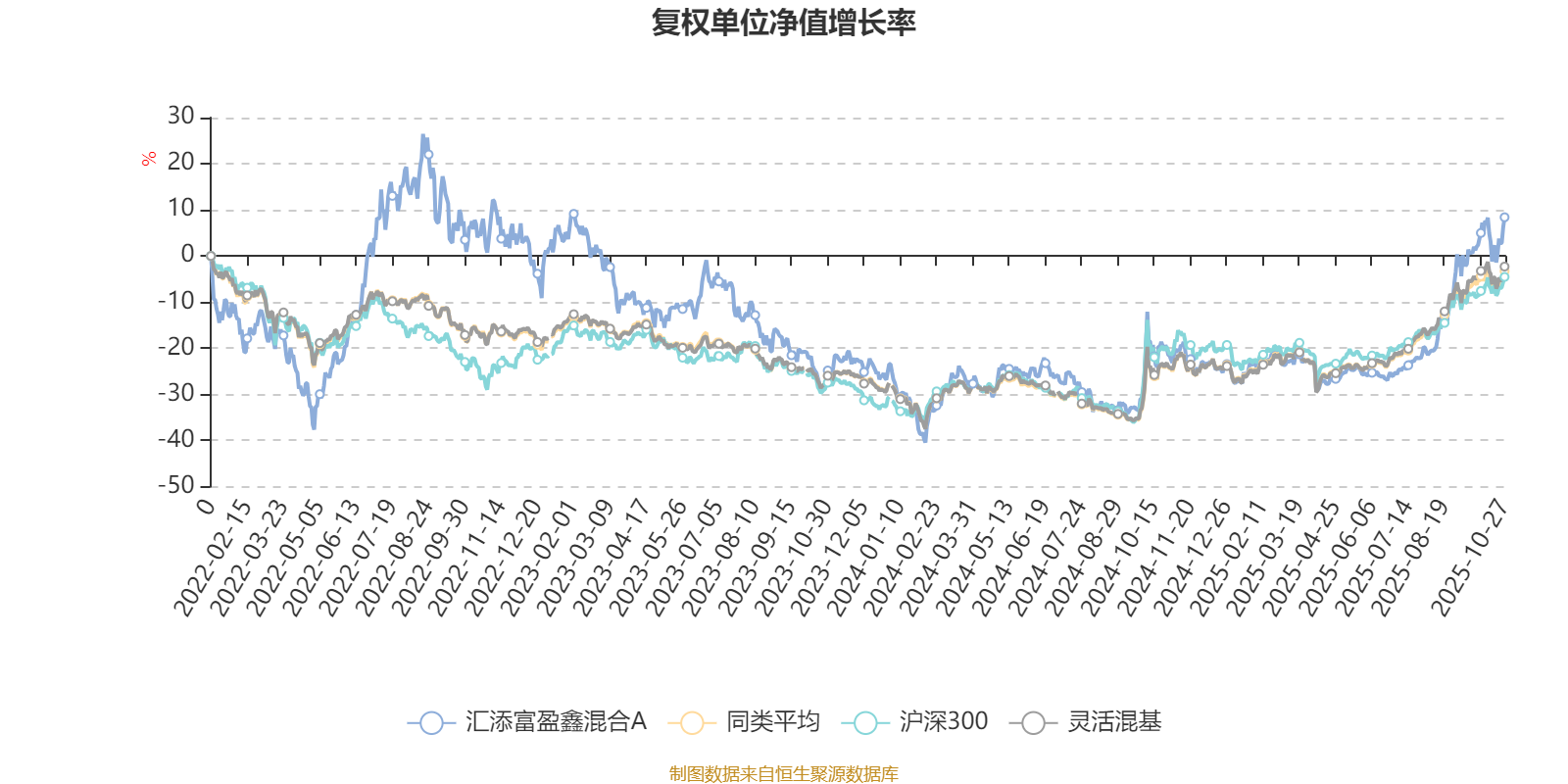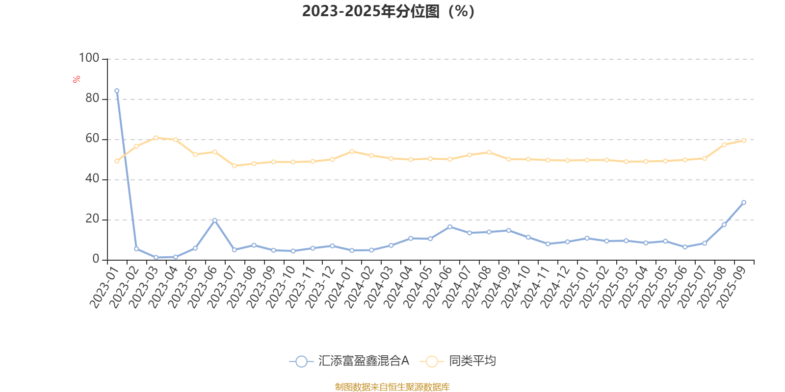 截至10月27日,汇添富盈鑫混合A近三个月复权单位净值增长率为39.34%,位于同类可比基金108/1287;近半年复权单位净值增长率为47.78%,位于同类可比基金180/1287;近一年复权单位净值增长率为34.39%,位于同类可比基金354/1287;近三年复权单位净值增长率为3.15%,位于同类可比基金936/1286。