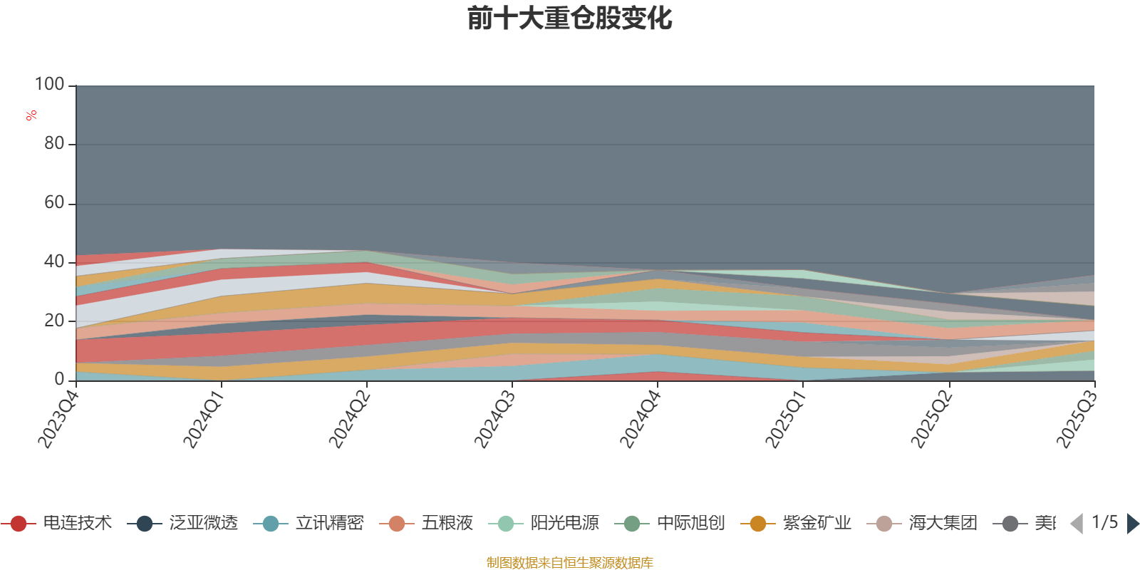 截至2025年三季度末,基金十大重仓股分别是亿纬锂能、恒瑞医药、阳光电源、宁德时代、ST华通、紫金矿业、泛亚微透、中际旭创、工业富联、新易盛。