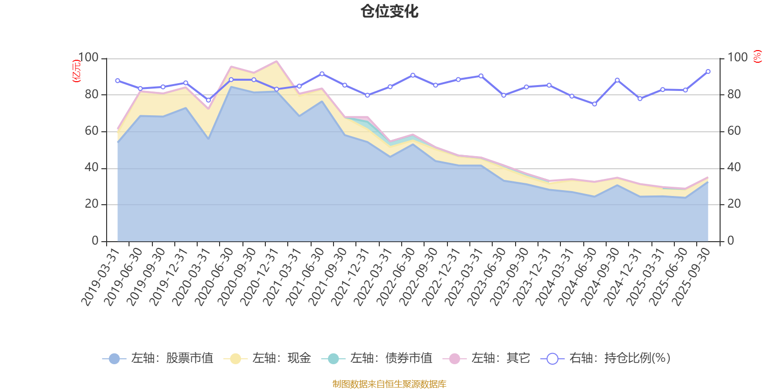 据定期报告数据统计,近三年平均股票仓位为83.95%,同类平均为86.15%。2025年三季度末基金达到92.83%的最高仓位,2024年上半年末最低,为75.07%。