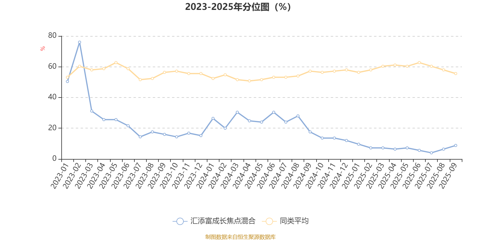 通过所选区间该基金净值增长率分位图,可以观察该基金与同类基金业绩比较情况。图为坐标原点到区间内某时点的净值增长率在同类基金中的分位数。