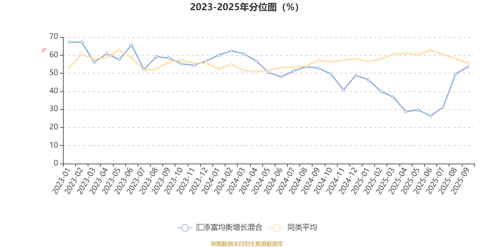 通过所选区间该基金净值增长率分位图,可以观察该基金与同类基金业绩比较情况。图为坐标原点到区间内某时点的净值增长率在同类基金中的分位数。