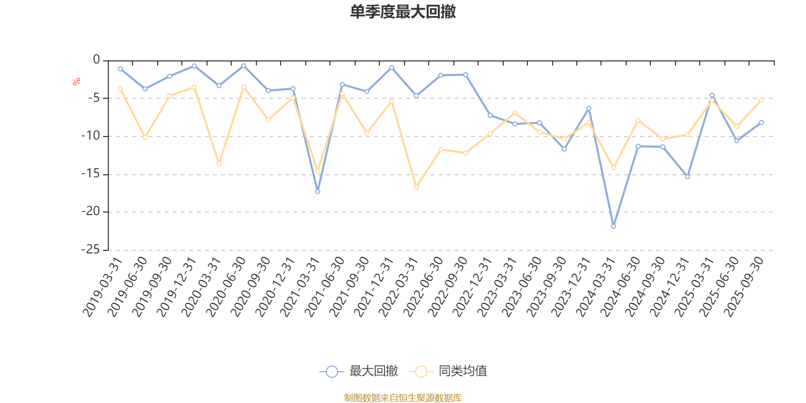 截至10月27日,基金近三年最大回撤为25.14%,同类可比基金排名375/1274。单季度最大回撤出现在2024年一季度,为21.86%。