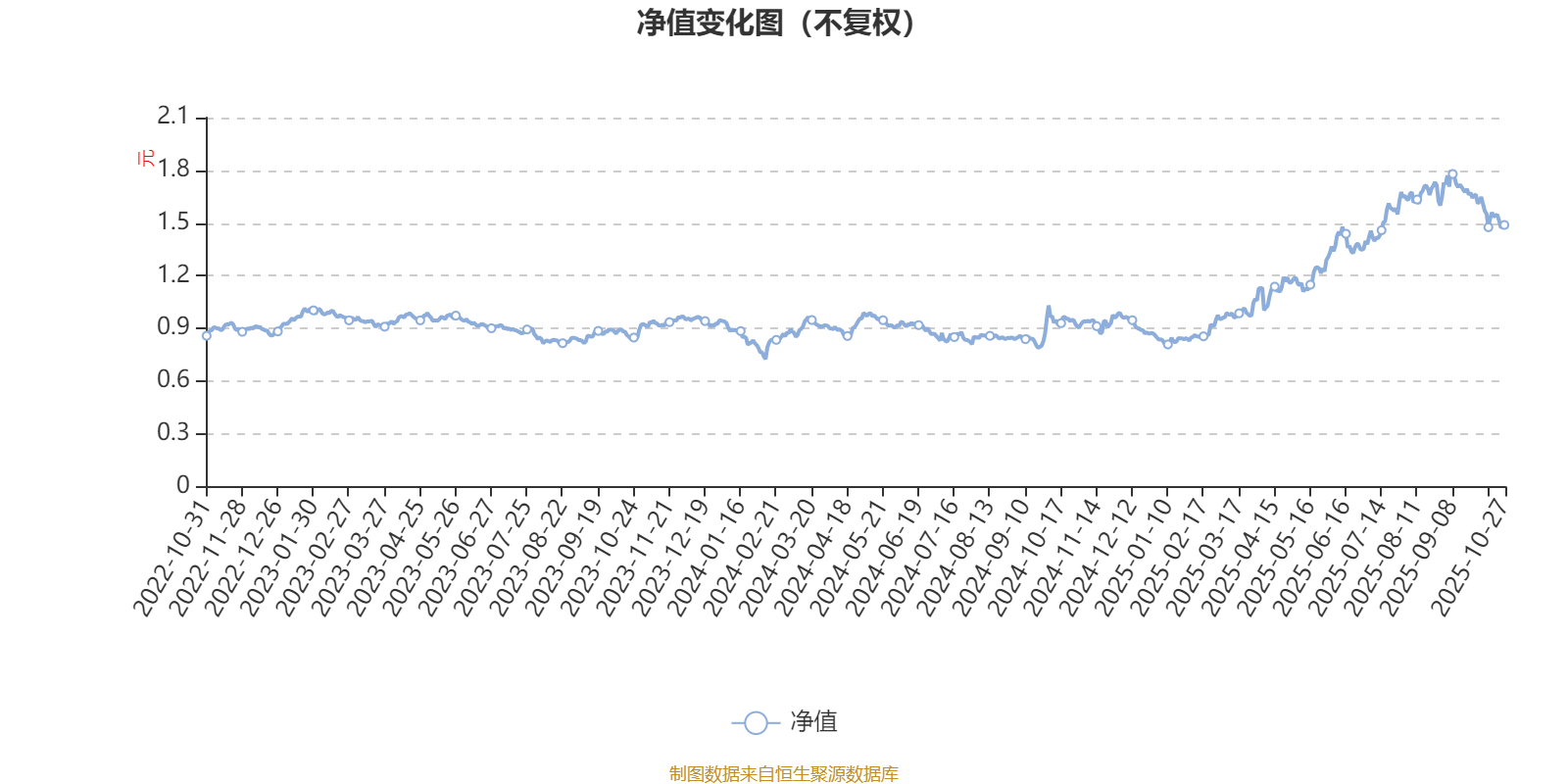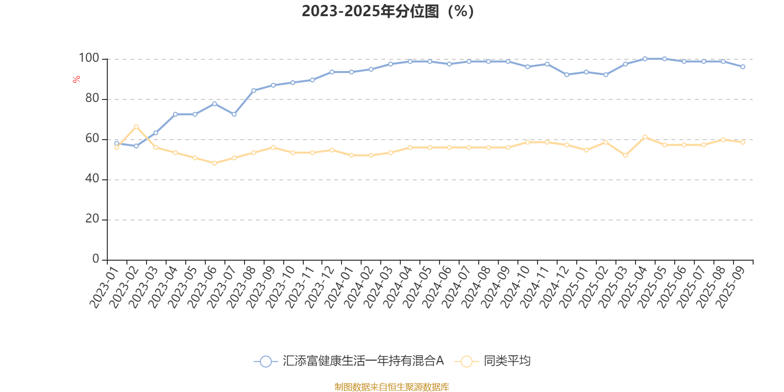 通过所选区间该基金净值增长率分位图,可以观察该基金与同类基金业绩比较情况。图为坐标原点到区间内某时点的净值增长率在同类基金中的分位数。