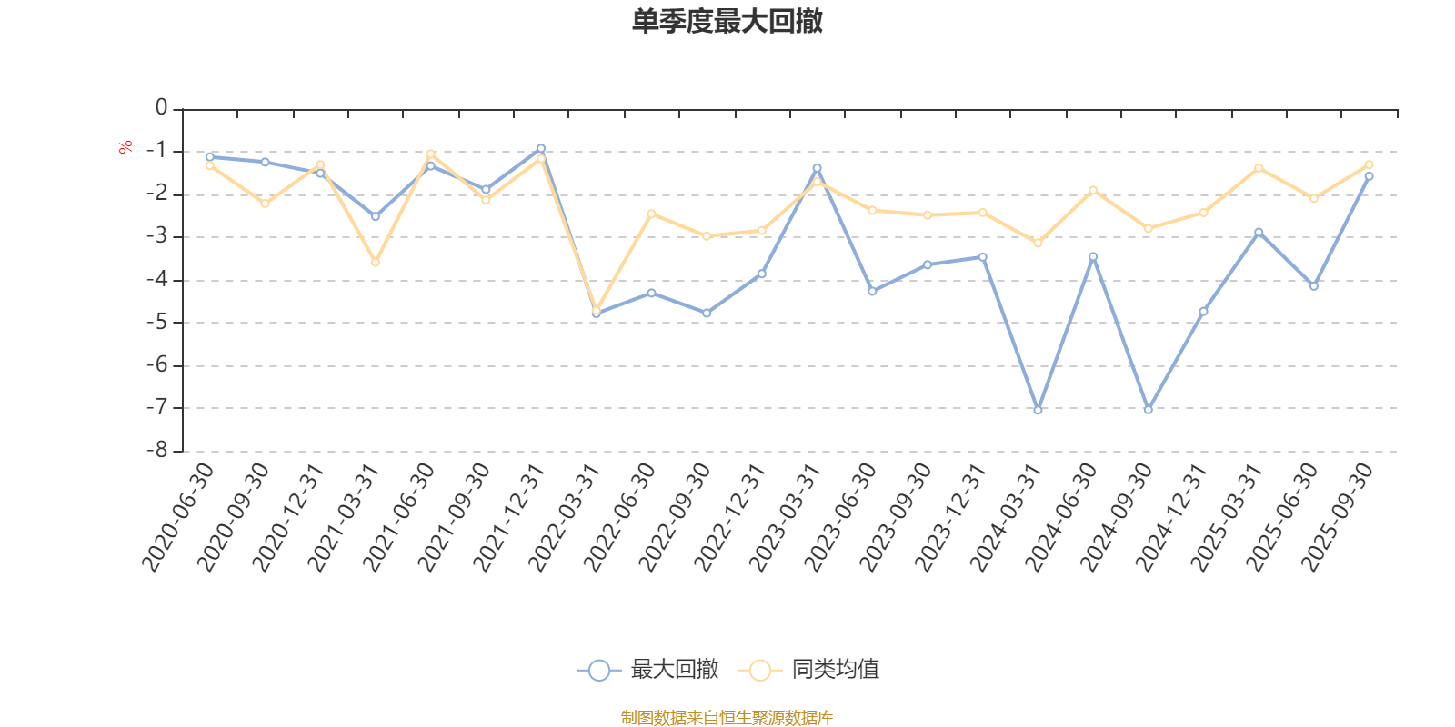 截至10月27日,基金近三年最大回撤为9.96%,同类可比基金排名395/535。单季度最大回撤出现在2024年一季度,为7.04%。