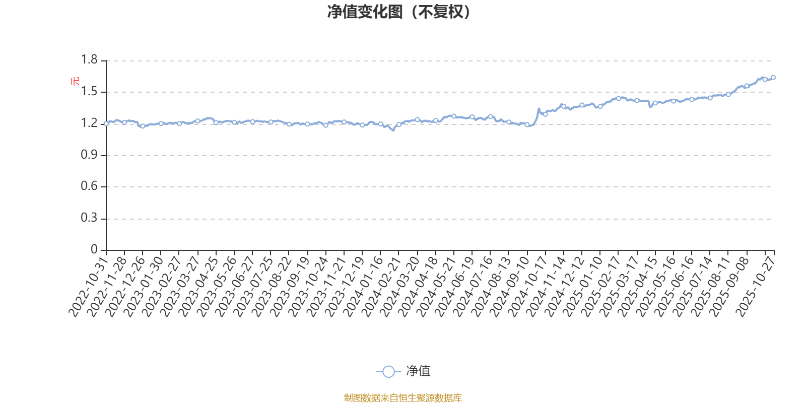 该基金属于偏债混合型基金。截至10月27日,单位净值为1.639元。基金经理是丁进,目前管理8只基金。其中,截至10月27日,兴业聚华混合A近一年复权单位净值增长率最高,达24.08%;兴业稳康三年定开债券最低,为2.87%。