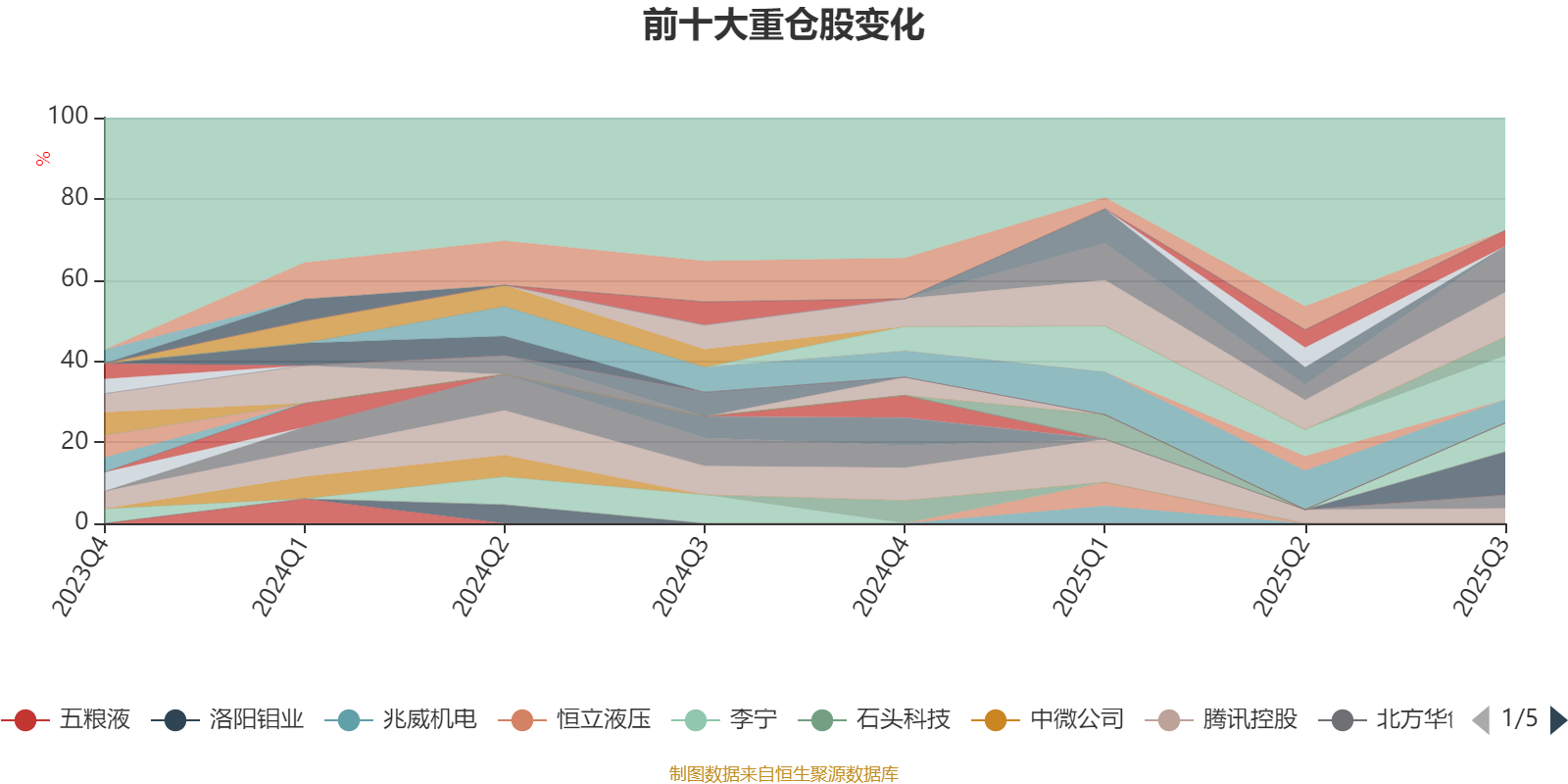 截至2025年三季度末,基金十大重仓股分别是亿纬锂能、阿里巴巴-W、中芯国际、兆易创新、寒武纪、小米集团-W、中科曙光、快手-W、腾讯控股、北方华创。