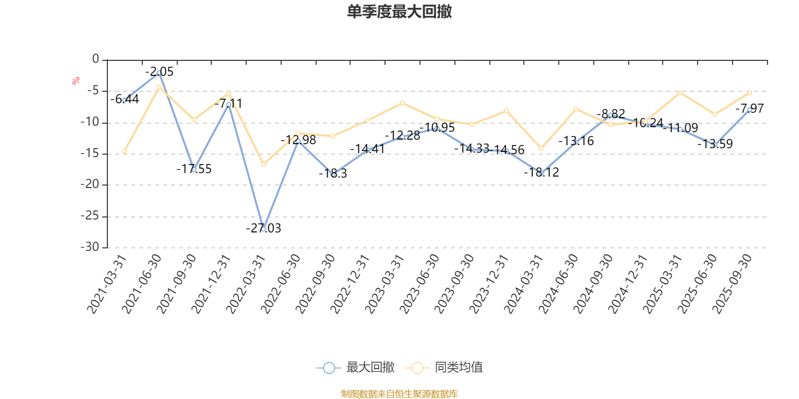 截至10月27日,基金近三年最大回撤为42.83%,同类可比基金排名1003/1274。单季度最大回撤出现在2022年一季度,为27.03%。