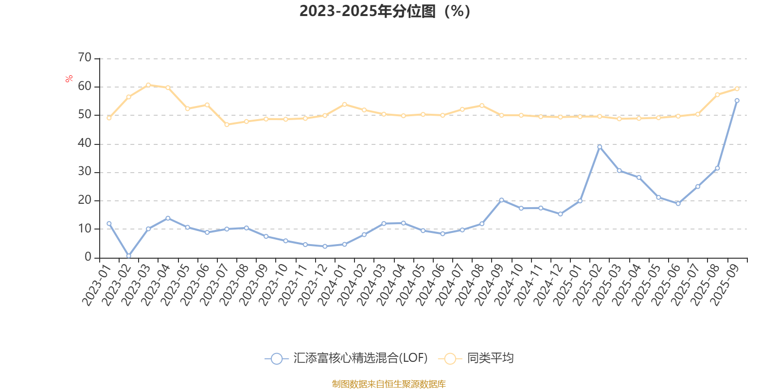 截至10月27日,汇添富核心精选混合(LOF)近三个月复权单位净值增长率为32.40%,位于同类可比基金163/1287;近半年复权单位净值增长率为43.17%,位于同类可比基金227/1287;近一年复权单位净值增长率为45.02%,位于同类可比基金210/1287;近三年复权单位净值增长率为36.33%,位于同类可比基金261/1286。