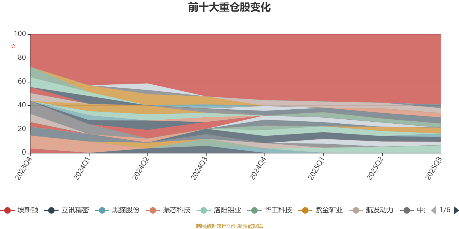 截至2025年三季度末,基金十大重仓股分别是洛阳钼业、金诚信、铜陵有色、新安股份、万华化学、山东黄金、兴发集团、中金黄金、恒力石化、紫光国微。