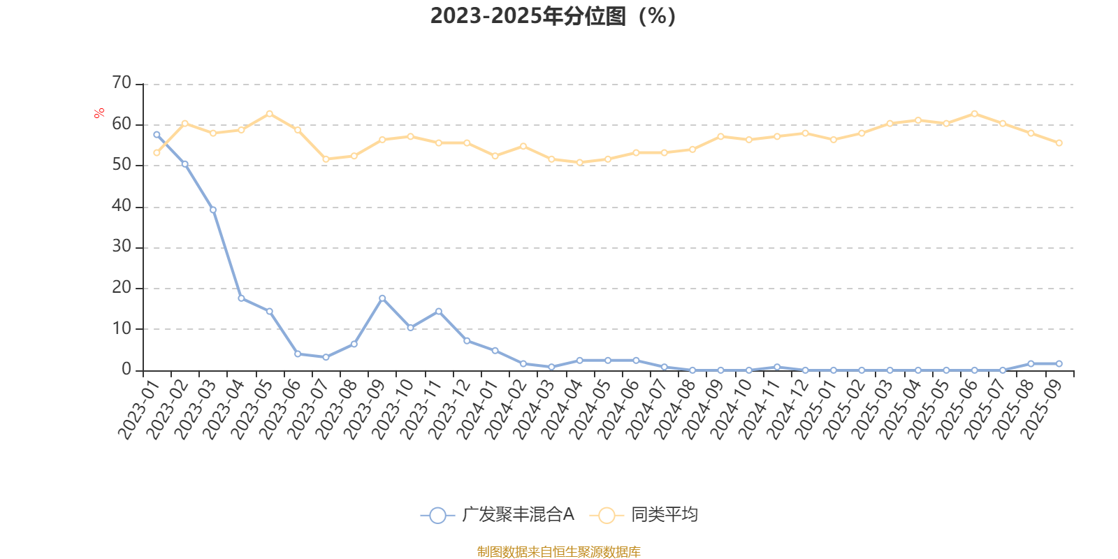 通过所选区间该基金净值增长率分位图,可以观察该基金与同类基金业绩比较情况。图为坐标原点到区间内某时点的净值增长率在同类基金中的分位数。