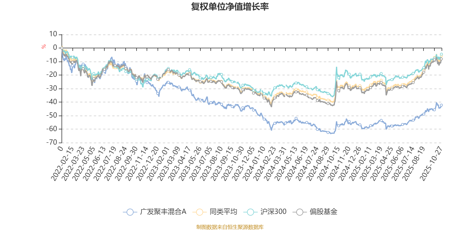 截至10月27日,广发聚丰混合A近三个月复权单位净值增长率为18.12%,位于同类可比基金59/130;近半年复权单位净值增长率为36.43%,位于同类可比基金52/130;近一年复权单位净值增长率为31.39%,位于同类可比基金61/130;近三年复权单位净值增长率为-25.13%,位于同类可比基金122/124。