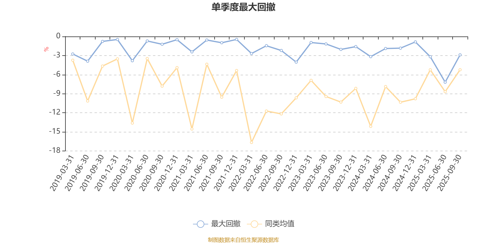截至10月27日,基金近三年最大回撤为10.32%,同类可比基金排名151/1274。单季度最大回撤出现在2025年二季度,为7.2%。