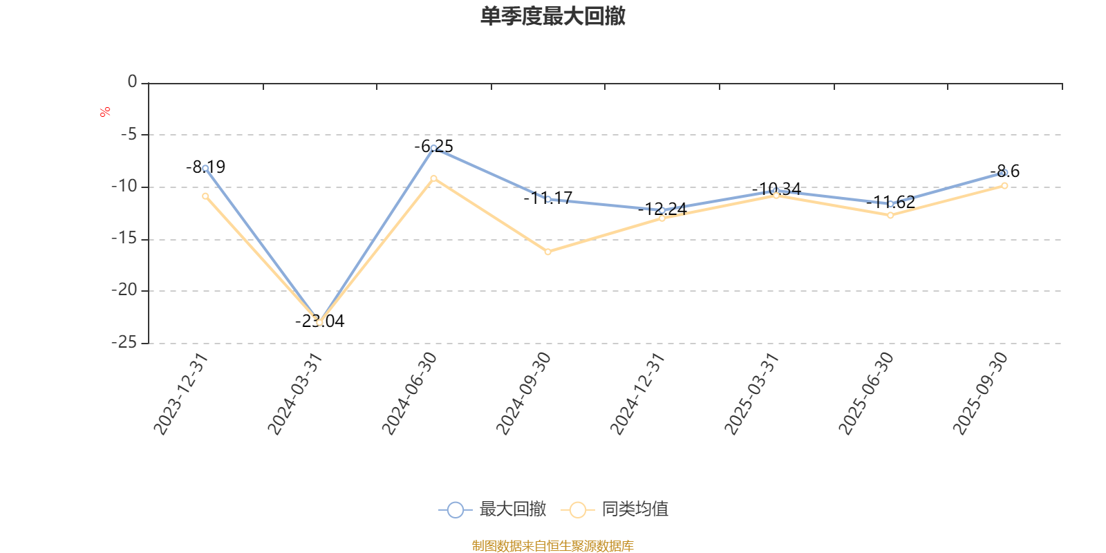 通过所选区间该基金净值增长率分位图,可以观察该基金与同类基金业绩比较情况。图为坐标原点到区间内某时点的净值增长率在同类基金中的分位数。
