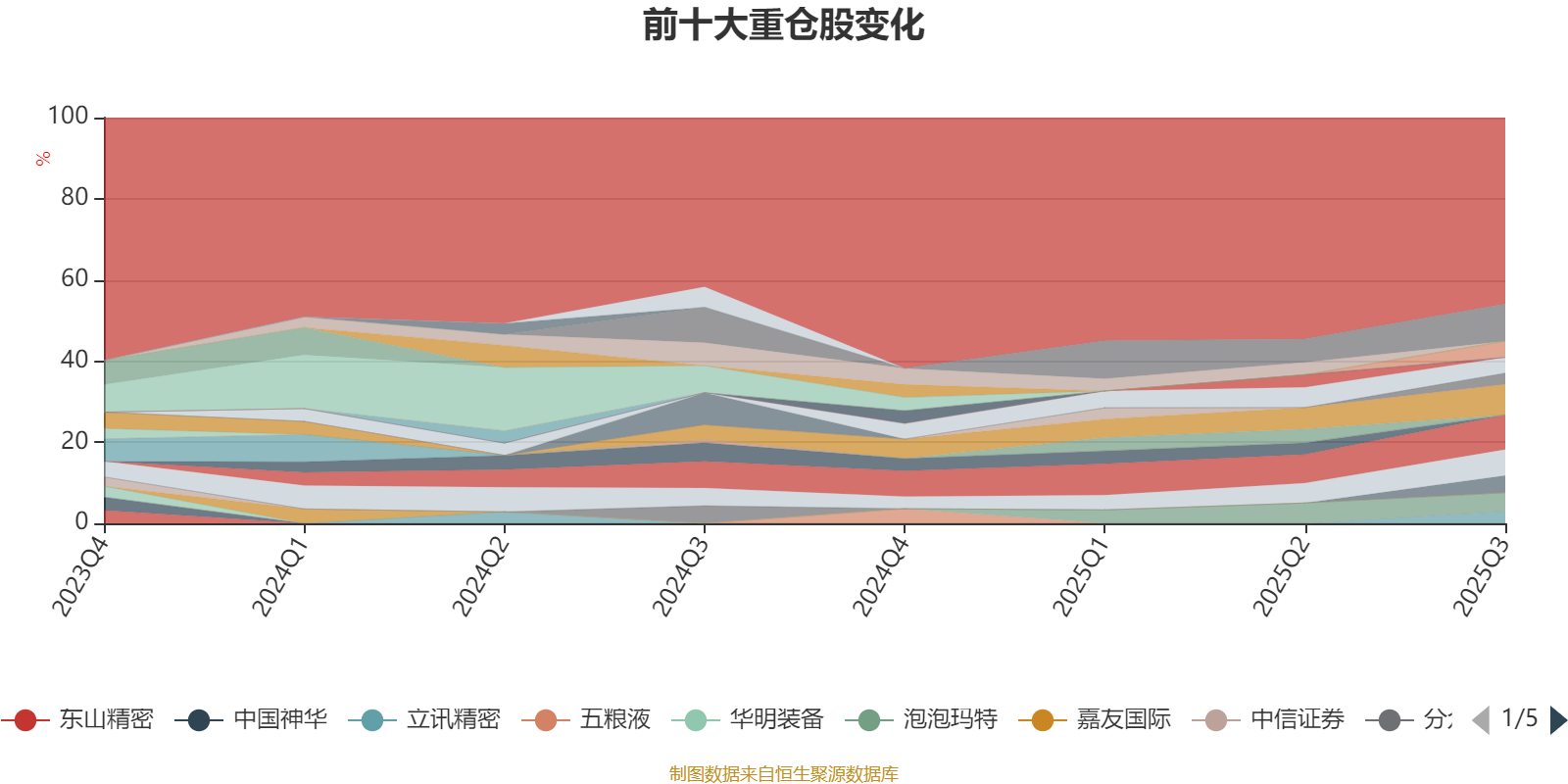截至2025年三季度末,基金十大重仓股分别是阿里巴巴-W、腾讯控股、宁德时代、紫金矿业、泡泡玛特、鹏鼎控股、寒武纪、招商银行、立讯精密、福耀玻璃。