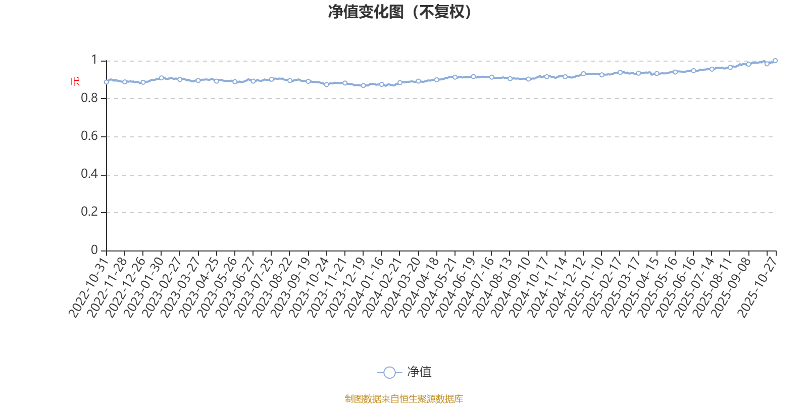 该基金属于偏债混合型基金。截至10月27日,单位净值为1元。基金经理是胡奕和曹诗扬。