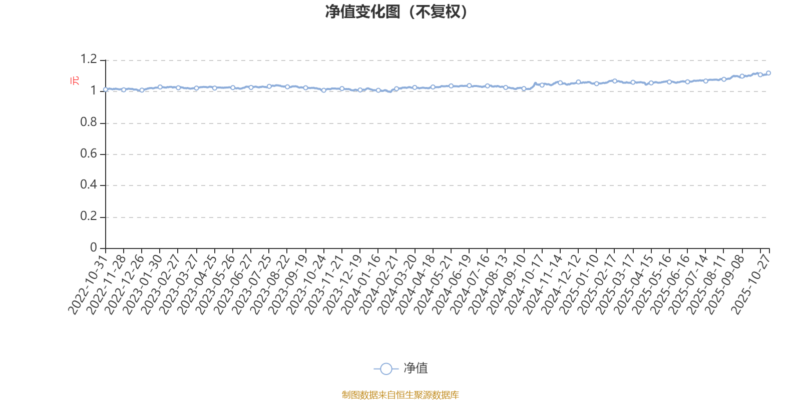 该基金属于偏债混合型基金。截至10月27日,单位净值为1.117元。基金经理是腊博,目前管理的9只基金近一年均为正收益。其中,截至10月27日,兴业龙腾双益平衡混合近一年复权单位净值增长率最高,达9.84%;兴业6个月定开债券最低,为2.89%。