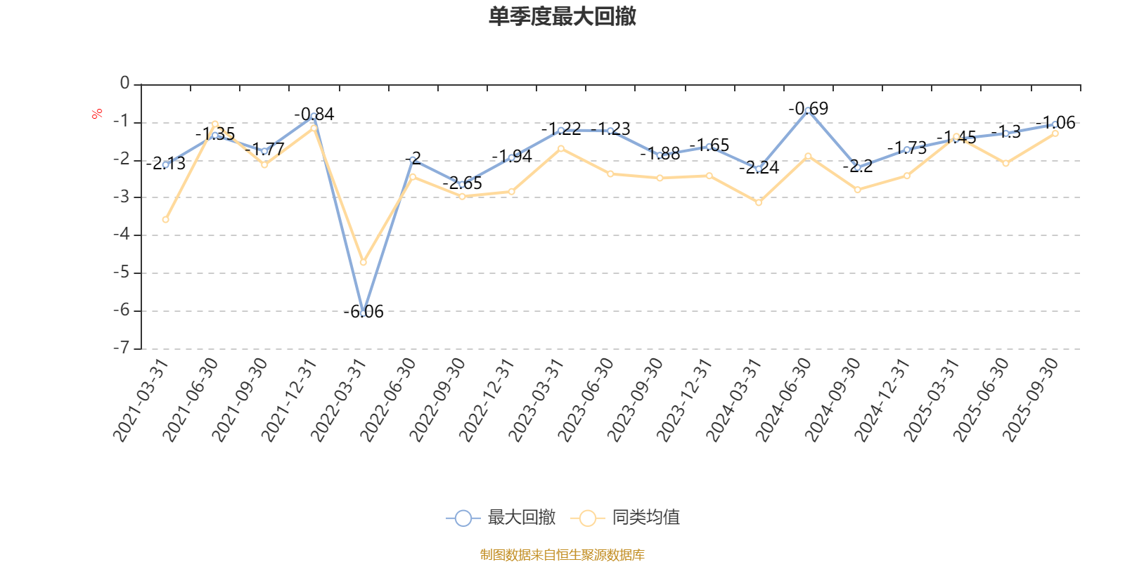 截至10月27日,基金近三年最大回撤为4.1%,同类可比基金排名125/535。单季度最大回撤出现在2022年一季度,为6.06%。