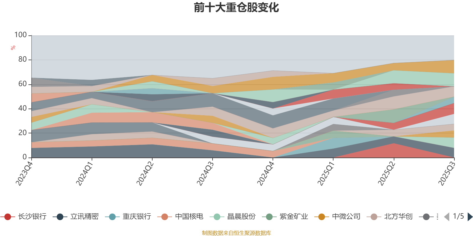 该基金持股集中度较高,近2年前十大重仓股集中度长期超过60%。截至2025年三季度末,基金十大重仓股分别是顺络电子、国电南瑞、金山办公、晶晨股份、海尔智家、迈瑞医疗、立讯精密、中微公司、北方华创、芯碁微装。