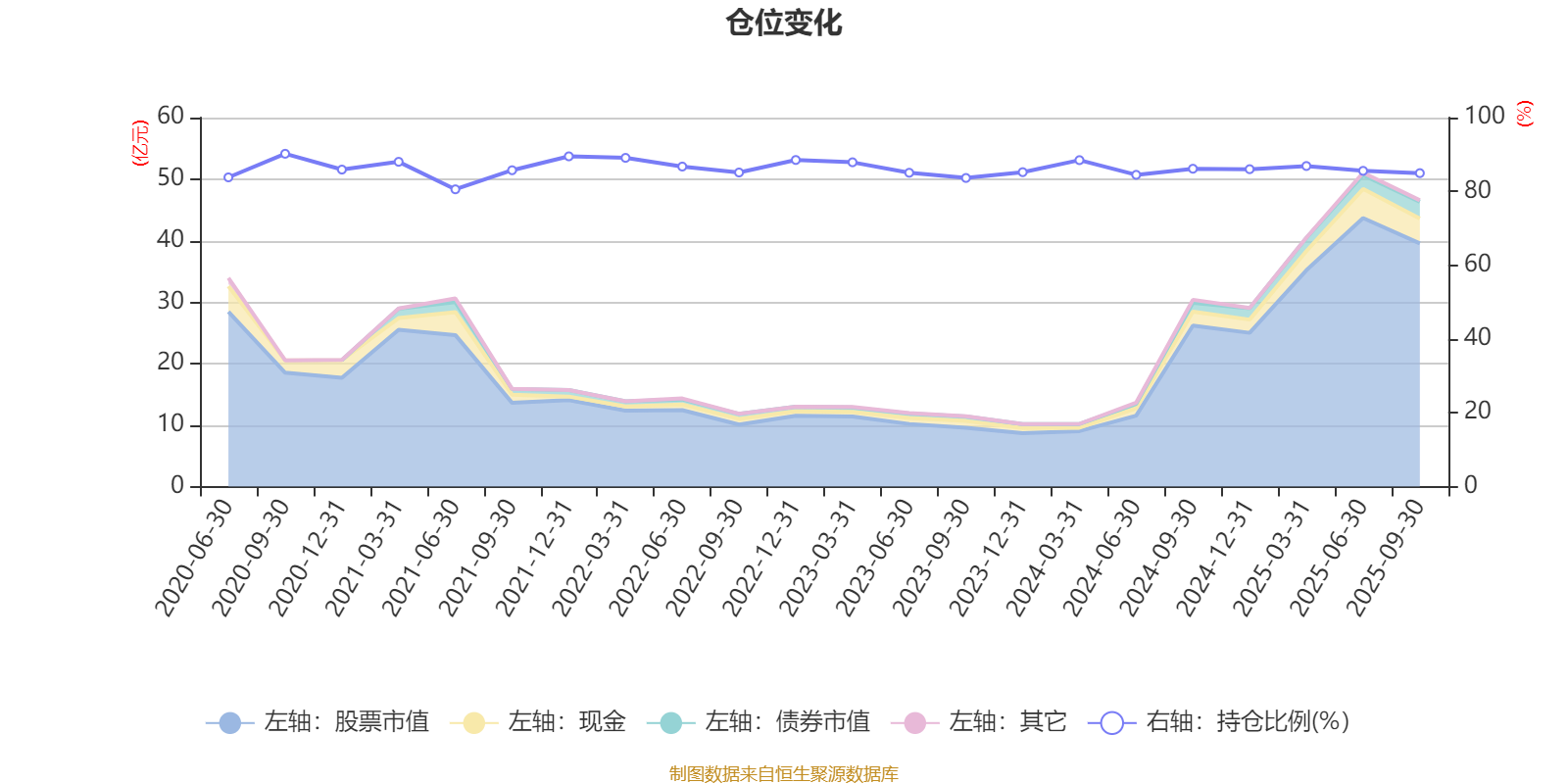 据定期报告数据统计,近三年平均股票仓位为86.07%,同类平均为86.15%。2020年三季度末基金达到90.2%的最高仓位,2021年上半年末最低,为80.56%。