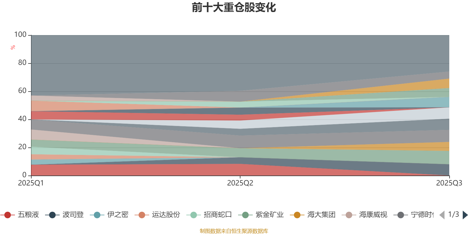 该基金持股集中度较高。截至2025年三季度末,基金十大重仓股分别是紫金矿业、宁德时代、猫眼娱乐、波司登、极兔速递-W、海天国际、三一重工、海大集团、恺英网络、美团-W。