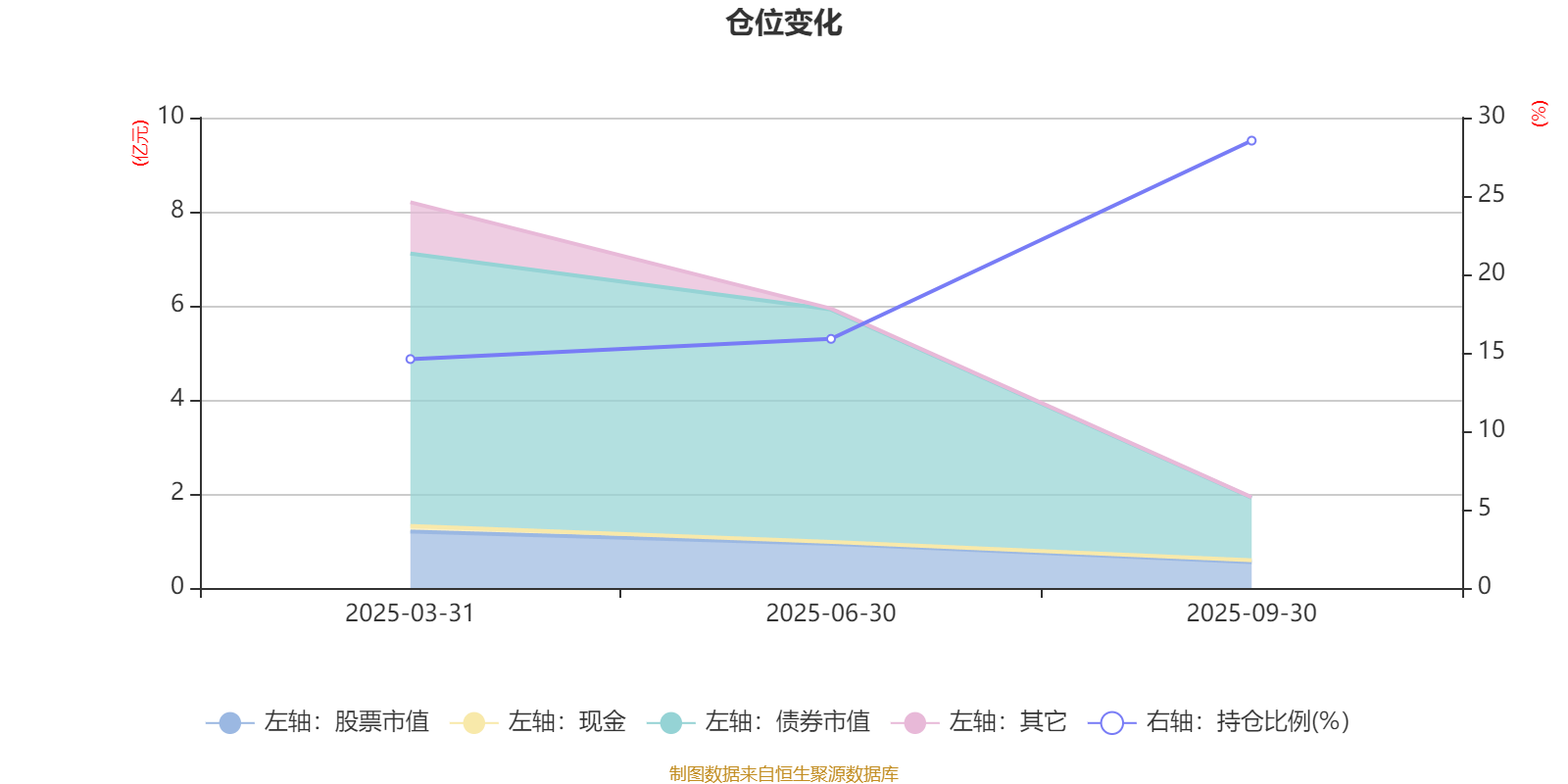 据定期报告数据统计,成立以来平均股票仓位为19.67%,同类平均为19.14%。2025年三季度末基金达到28.53%的最高仓位,2025年一季度末最低,为14.6%。