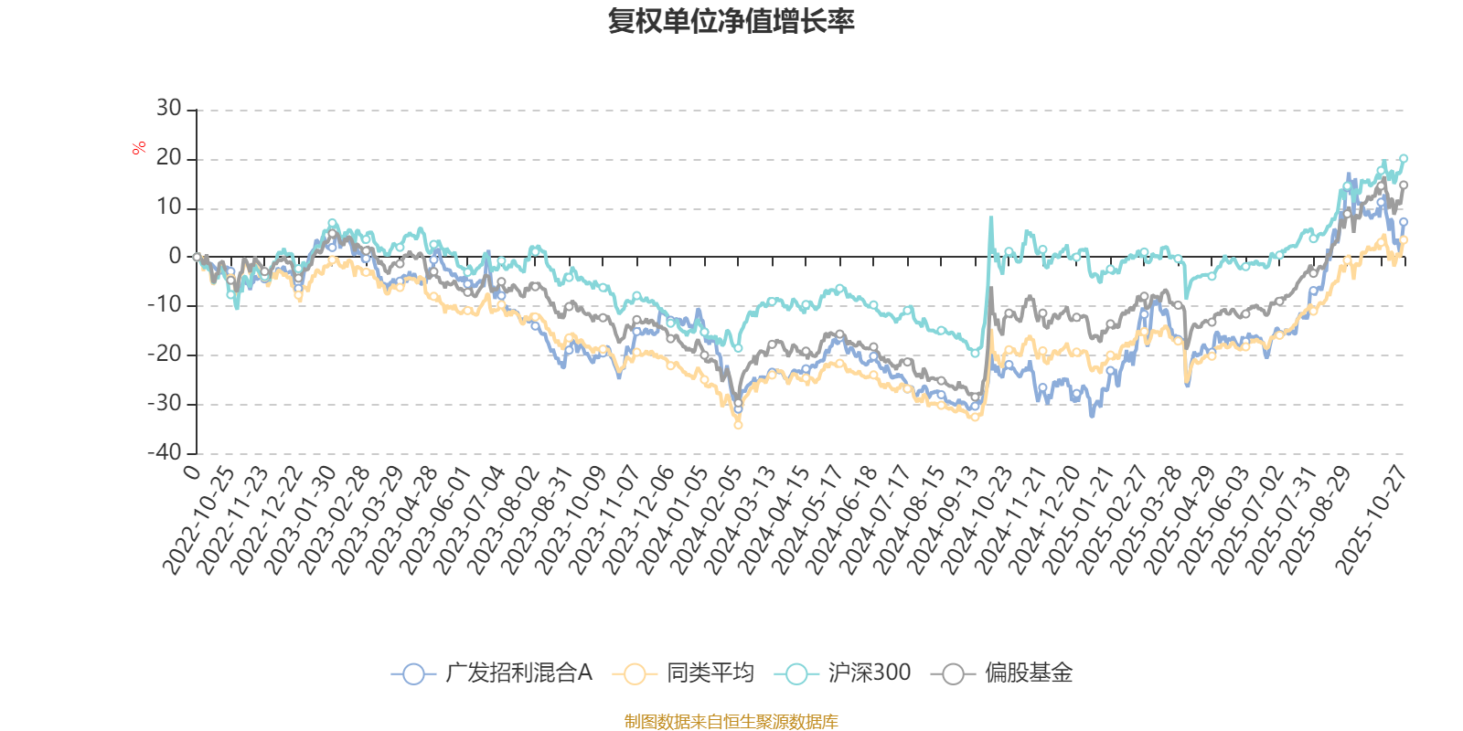 截至10月27日,广发招利混合A近三个月复权单位净值增长率为22.64%,位于同类可比基金176/689;近半年复权单位净值增长率为33.92%,位于同类可比基金242/688;近一年复权单位净值增长率为38.34%,位于同类可比基金175/653;近三年复权单位净值增长率为12.79%,位于同类可比基金186/364。
