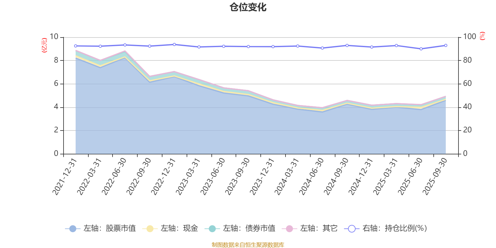 据定期报告数据统计,基金股票仓位长期保持较高水平,近三年平均股票仓位为92.09%,同类平均为85.66%。2022年末基金达到93.77%的最高仓位,2025年上半年末最低,为90.02%。