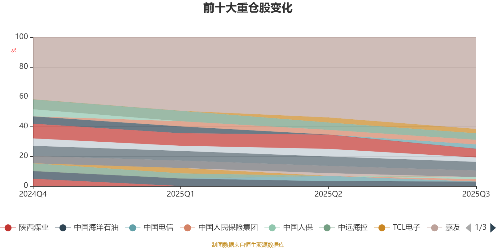 截至2025年三季度末,基金重仓股分别是长江电力、招商银行、中国移动、美的集团、紫金矿业、中国海洋石油、川投能源、华润万象生活、永兴股份、中国人民保险集团、中国人保。