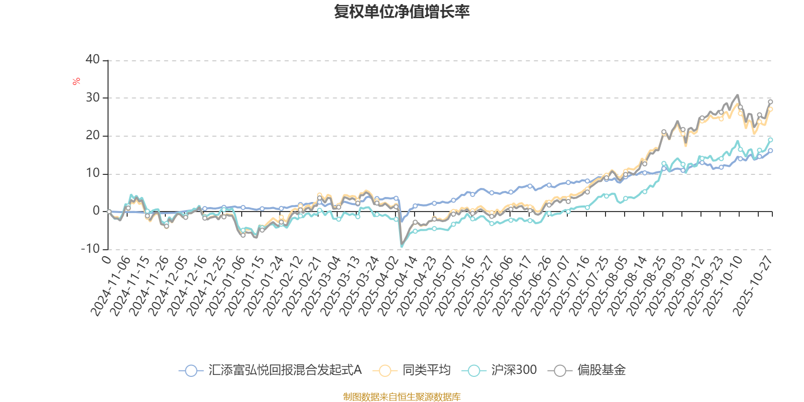 截至10月27日,汇添富弘悦回报混合发起式A近三个月复权单位净值增长率为7.02%,位于同类可比基金527/689;近半年复权单位净值增长率为13.53%,位于同类可比基金585/688。