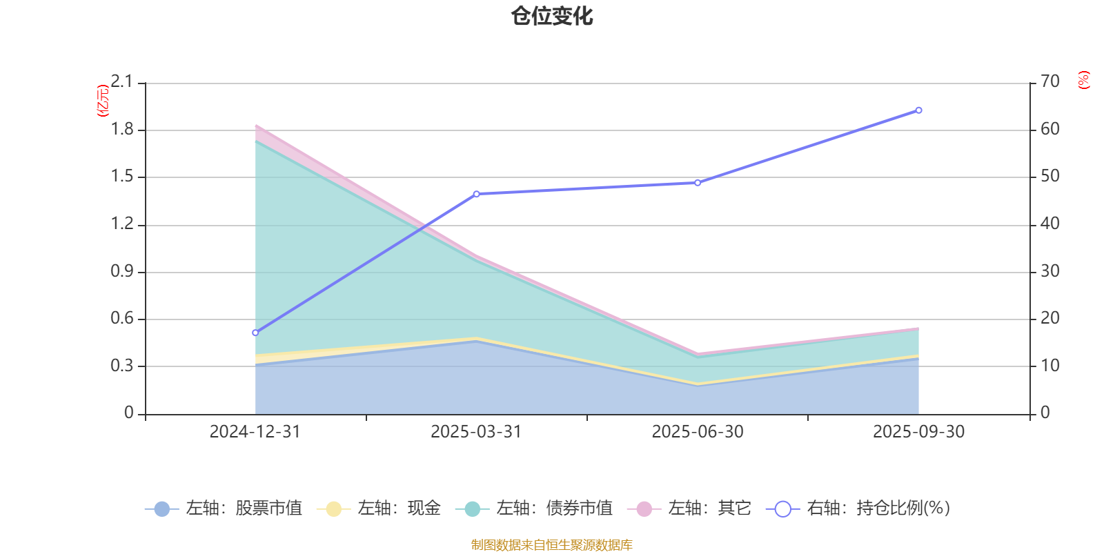 据定期报告数据统计,成立以来平均股票仓位为44.19%,同类平均为83.73%。2025年三季度末基金达到64.2%的最高仓位,2024年末最低,为17.18%。