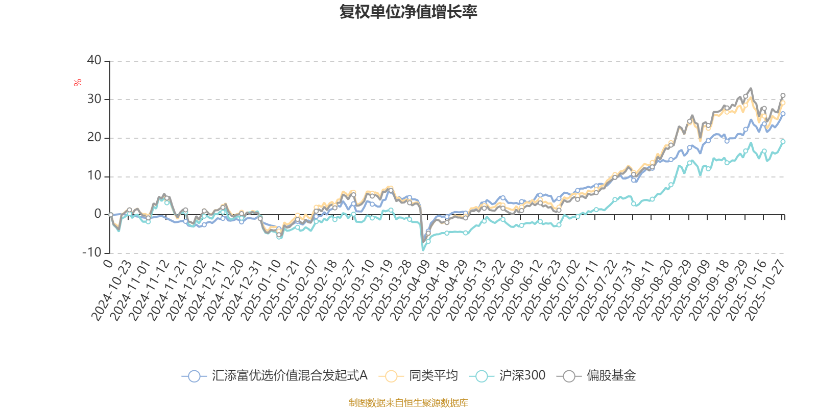 截至10月27日,汇添富优选价值混合发起式A近三个月复权单位净值增长率为15.42%,位于同类可比基金314/689;近半年复权单位净值增长率为25.49%,位于同类可比基金374/688;近一年复权单位净值增长率为26.75%,位于同类可比基金333/653。