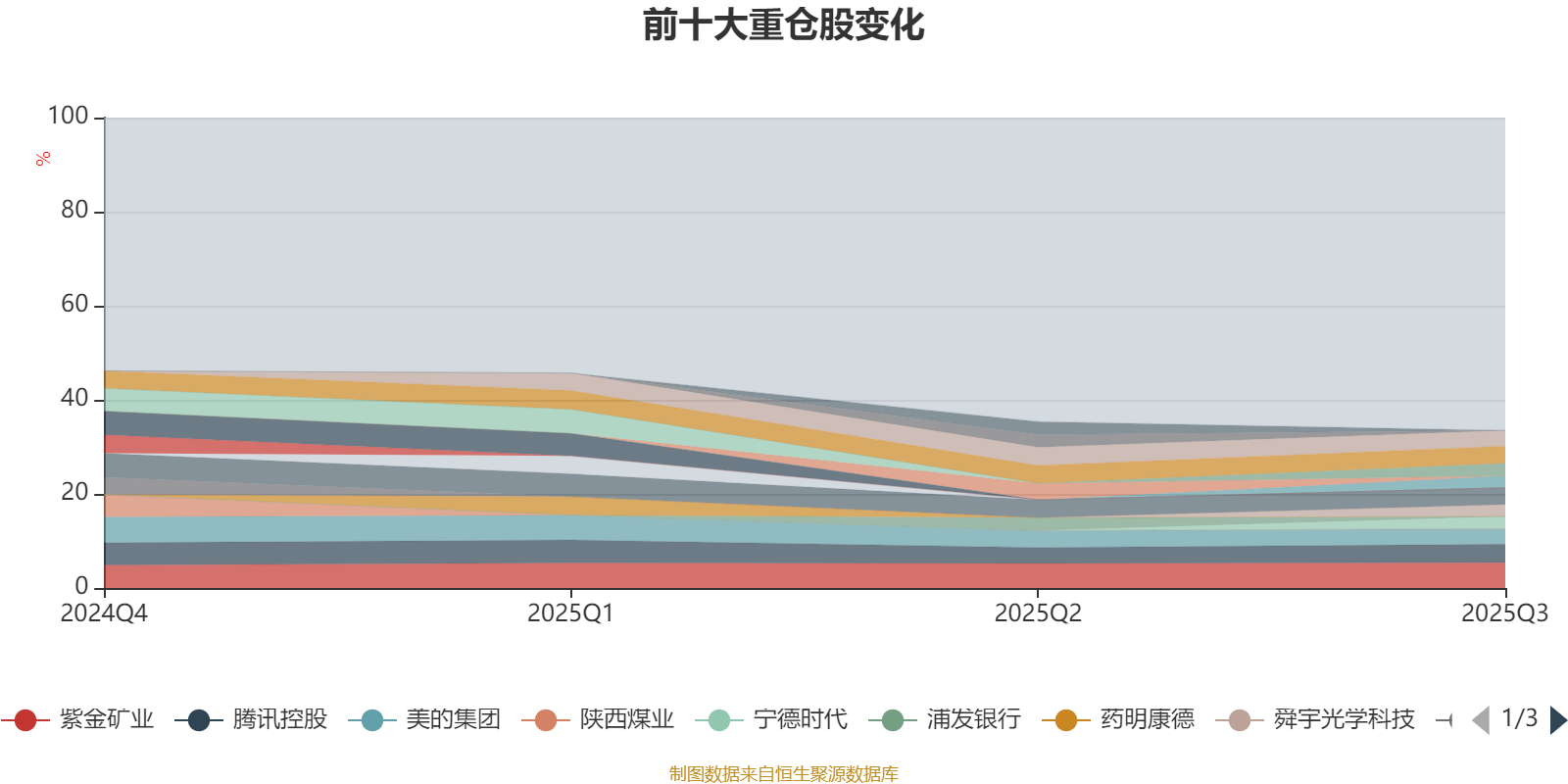 截至2025年三季度末,基金十大重仓股分别是紫金矿业、腾讯控股、华润万象生活、中国海洋石油、中国电信、美的集团、阿里巴巴-W、宁德时代、舜宇光学科技、中国中冶。