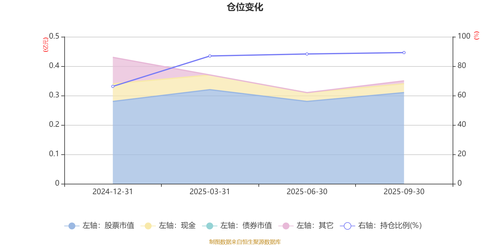 据定期报告数据统计,成立以来平均股票仓位为82.66%,同类平均为83.73%。2025年三季度末基金达到89.23%的最高仓位,2024年末最低,为66.24%。