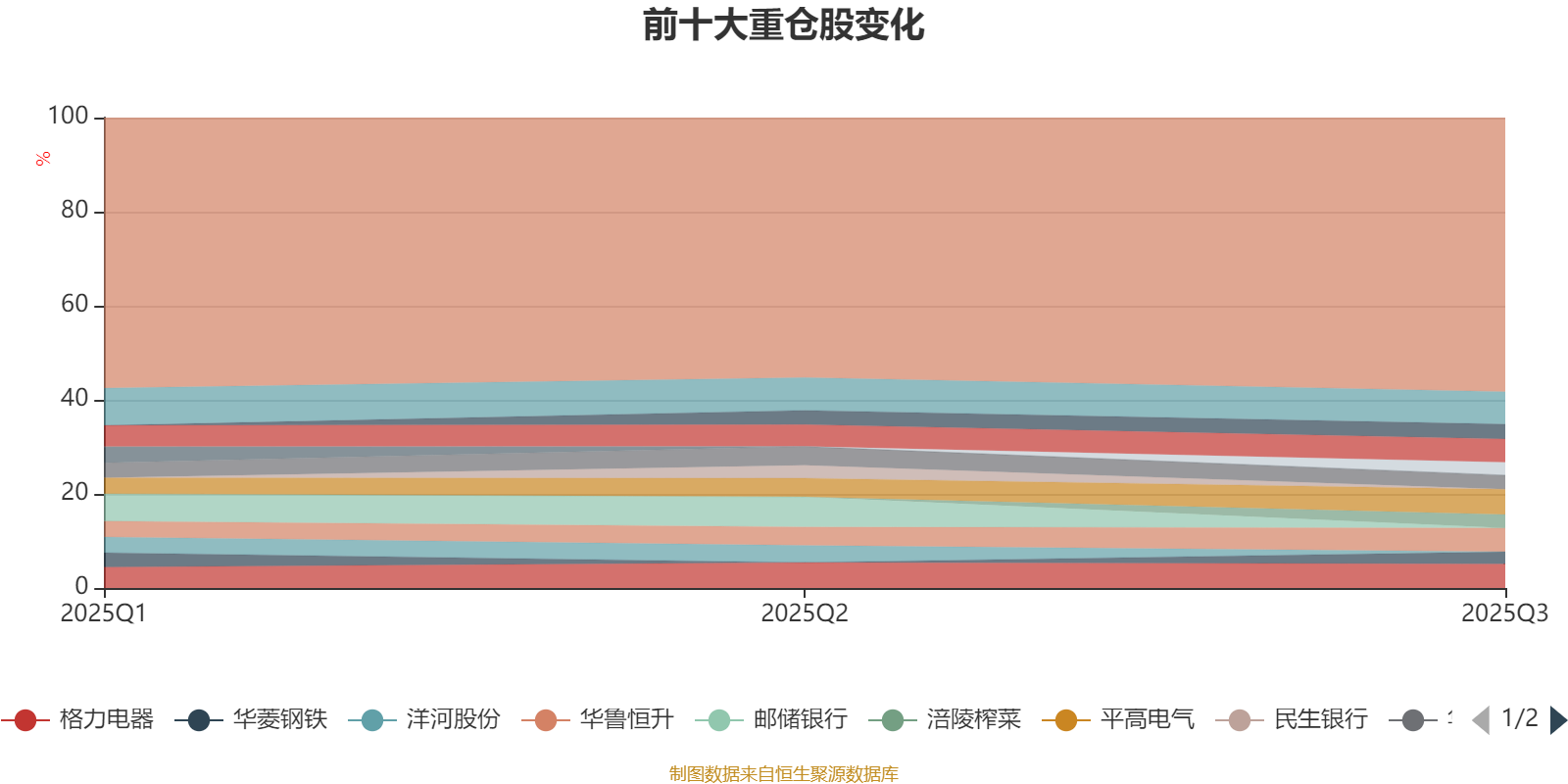 截至2025年三季度末,基金十大重仓股分别是交通银行、平高电气、格力电器、华鲁恒升、兴业银行、中国中铁、华润双鹤、涪陵榨菜、大华股份、华菱钢铁。