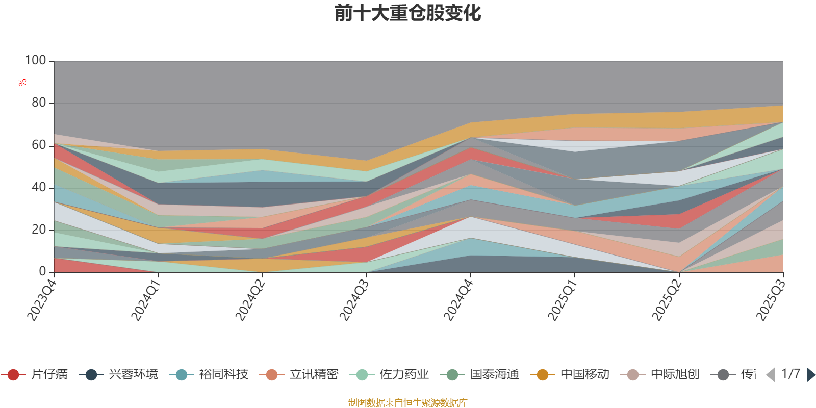 该基金持股集中度较高。截至2025年三季度末,基金十大重仓股分别是山金国际、传音控股、中际旭创、立讯精密、中国海油、新宙邦、国泰海通、工业富联、宁德时代、生益电子。