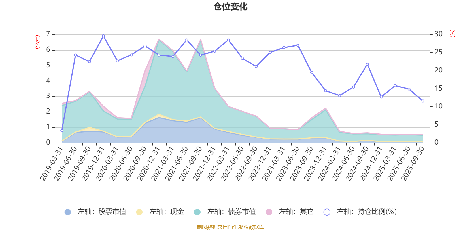 据定期报告数据统计,近三年平均股票仓位为18.13%,同类平均为19.14%。2019年末基金达到29.63%的最高仓位,2019年一季度末最低,为3.37%。