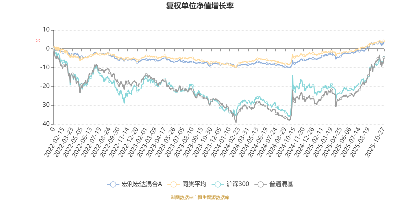 截至10月27日,宏利宏达混合A近三个月复权单位净值增长率为4.84%,位于同类可比基金125/629;近半年复权单位净值增长率为8.25%,位于同类可比基金151/629;近一年复权单位净值增长率为11.98%,位于同类可比基金93/623;近三年复权单位净值增长率为10.41%,位于同类可比基金322/557。