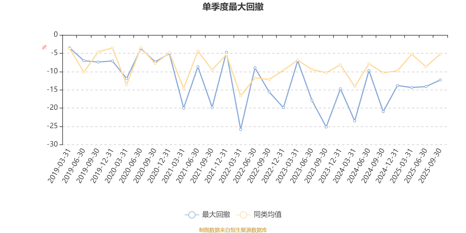 截至10月27日,基金近三年最大回撤为51.2%,同类可比基金排名1204/1274。单季度最大回撤出现在2022年一季度,为25.87%。