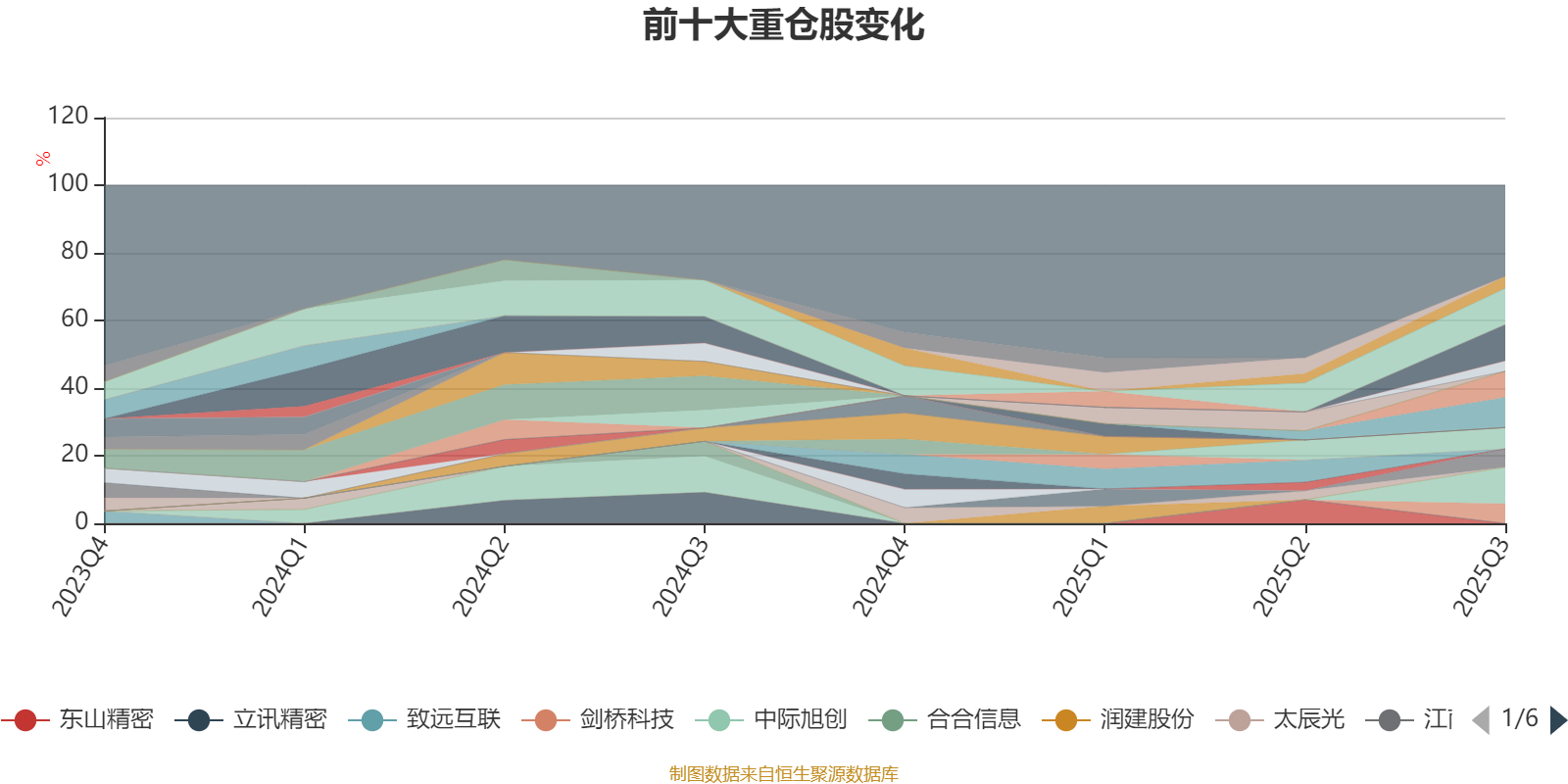 截至2025年三季度末,基金十大重仓股分别是中际旭创、新易盛、工业富联、源杰科技、生益电子、生益科技、剑桥科技、江南新材、长芯博创、胜宏科技。