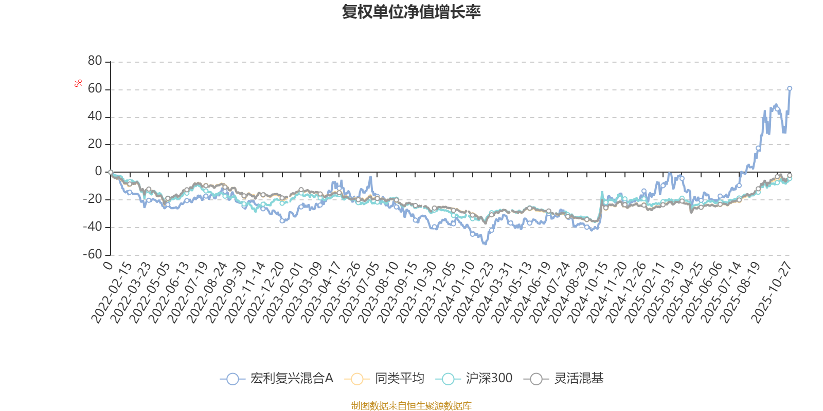 截至10月27日,宏利复兴混合A近三个月复权单位净值增长率为61.65%,位于同类可比基金16/1287;近半年复权单位净值增长率为101.74%,位于同类可比基金21/1287;近一年复权单位净值增长率为96.60%,位于同类可比基金12/1287;近三年复权单位净值增长率为106.15%,位于同类可比基金19/1286。