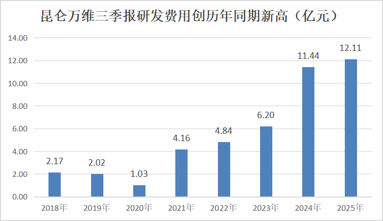 AI战略是昆仑万维业绩爆发的决定性因素。2023年初,昆仑万维宣布“All in AGI与AIGC”的口号,宣布全面拥抱人工智能。今年前三季度,公司坚定推进人工智能战略布局,聚焦AGI与AIGC核心方向,不断加大技术研发与应用落地力度。依托强大的创新能力与完善的产品矩阵,公司在AI生态构建与商业化进程中取得显著成效,整体经营表现强劲。