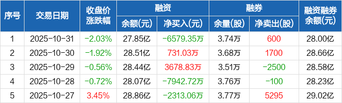 北方华创:融资净偿还6579.35万元,融资余额27.85亿元(10-31)