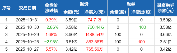 山东威达:融资净买入74.71万元,融资余额3.59亿元(10-31)