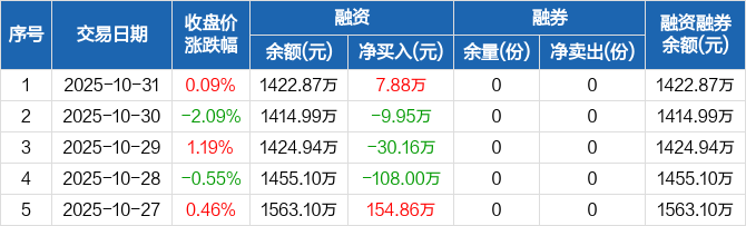 红利质量ETF:融资净买入7.88万元,融资余额1422.87万元(10-31)