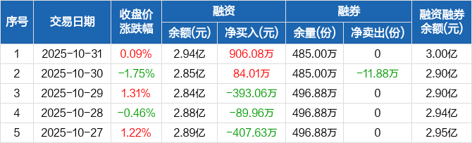 机器人ETF:融资净买入906.08万元,融资余额2.94亿元(10-31)