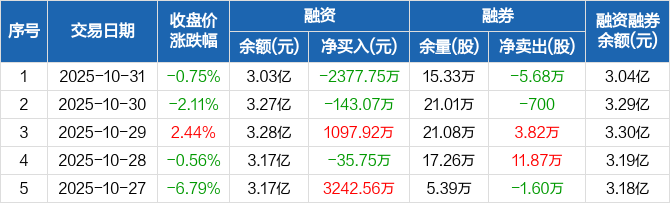 良信股份:融资净偿还2377.75万元,融资余额3.03亿元(10-31)