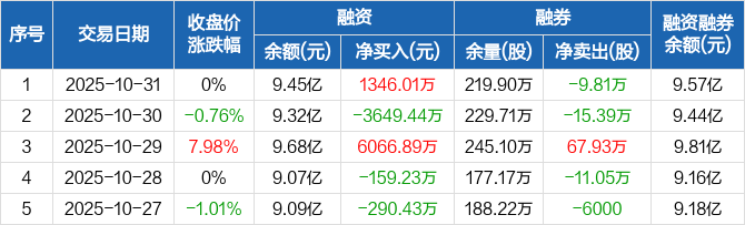 美锦能源:融资净买入1346.01万元,融资余额9.45亿元(10-31)